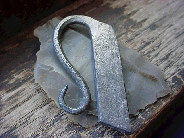 Single Loop Colonial era fire steel or flint striker. This is based on a standard English trade item ca. 1700, and would have been carried by a farmer, settler, hunter, soldier, or traded to one of the Tribes in the British Colonies from the early 1700's up through the Revolution. Originals have been found throughout the Colonies, and across the mountains into the Old Northwest Territory and the Middle Grounds of Kentucky and Tennessee. For someone recreating a settler or hunter in the Middle Grounds. Size is approximately 3 1/4 inch by 1 1/4 inch, and 1/8 inch thick.